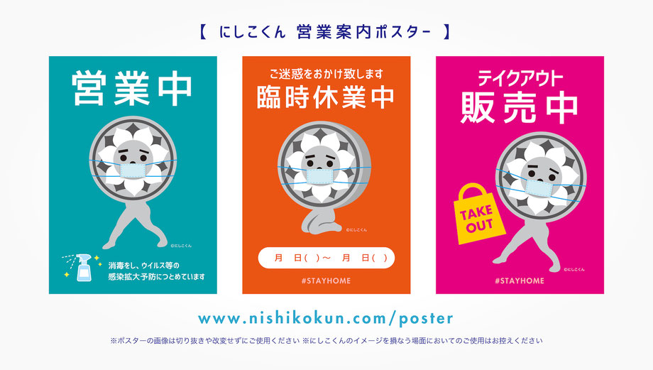 にしこくんが少しでも何かのお役に立てればとの思いから、店舗様向けの営業案内ポスターを作成致しました。